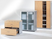 Kancelársky skladovací program. Dostupný v rôznych veľkostiach a výškach. Obsahuje širokú škálu uskladňovacích možností: police, dvere, šuflíky, atď. ...v rôznych povrchových úpravách.