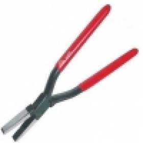 Špeciálne kliešte s plochým nosom, kované, bez zúbkov, zošikmené hrany, hladené ústa, s vonkajšie uloženým klbom, poplastovaná rukoväť, uhlíkova oceľ, dlžka: 240 mm.