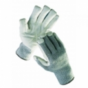 Zimné kombinované rukavice, dlaň z jednofarebnej lícovej nábytkovej hovädziny, chrbát a manžeta z bielej bavlnenej tkaniny, zateplená podšívka.