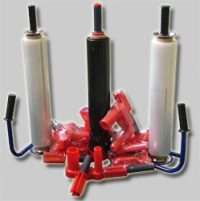 Pri používaní stretch fólie ručnej a mini roliek, je veľmi vyuzivana jedna pomocka, a tou sú plastové prípadne kovové ručné držiaky na fóliu. Tieto držiaky veľmi uľahčujú používanie fólie pri ovíjaní tovaru na palete, pretože 1 časť držiaka slúži na uchopenie a 2 časť držiaka je zároveň brzda.