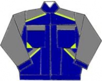 Blúza bundového typu, zapínanie na zips, doplnky z fluorescenčného materiálu, nohavice s náprsenkou na traky, spevnené kolená.