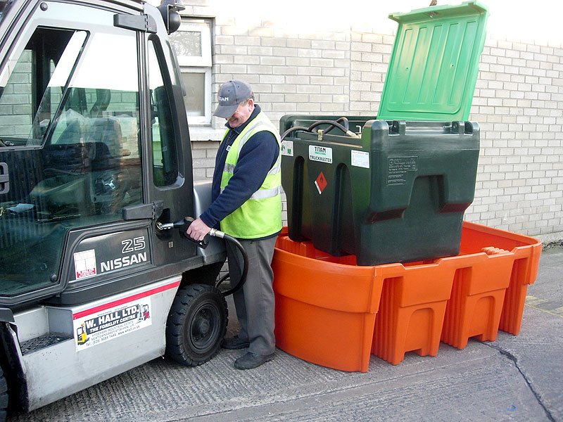 Záchytné vane a palety (pracovné podlahy), sú vyrobené zo špeciálne upraveného polyetylénu, odolného voči väčšine chemikálií. Objemy: 275l, 240l, 215, 112l, 55l. Záchytná paleta pod IBC kontajnery; objem - 1050 l.
