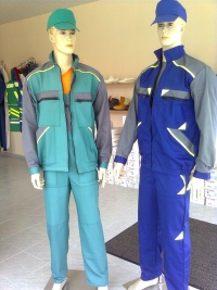 Monterkový komplet s nohavicami na traky, so žltými fluorescenčnými, alebo striebornými reflexnými prvkami.