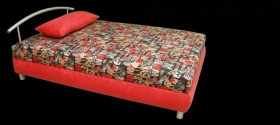 Štýlová dvojposteľ Epsylon s kovovými nožičkami a elegantným kovovým čelom. Má plochu na ležanie vytvorenú sendvičovým polyuretánovým zdravotným matracom uloženým na lamelovom rošte.