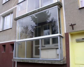 Bezrámový posuvný a otočný zasklievací systém z číreho bezpečnostného skla hr. 6 mm a vodiacich hliníkových profilov na zasklenie lodžií, balkónov a výklenkov domov. Systém zabezpečuje minimalizáciu tepelných strát, ochranu proti nepriazni počasia, hluku, prachu a exhaláciám.