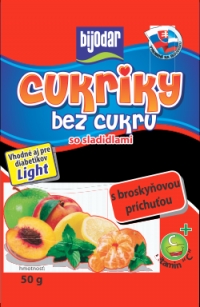 Ponúkame cukríky bez cukru s broskyňovou príchuťou 50g.
