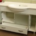 Zásuvková kúpeľňová skrinka s dvomi otváravými dvierkami a s bočnými sklenenými policami pre umývadlo šírky 505 mm a dĺžky 1200 mm.