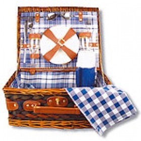 Ponúkame piknikový kôš so sklenenými a porcelánovými doplnkami.