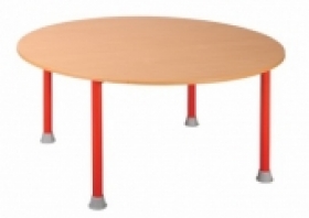 Konštrukcia z 40 mm trubky, laminátová stolová doska (priemer 120 cm), plastové papučky.