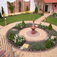 Pravidelná úprava nádvoria harmonizuje s architektonickým riešením budovy. Pravidelne usporiadaná zeleň a tvarované kultivary rastlín spolu s prvkami fontány vyzdvihuje historický a pompézny štýl architektúry.