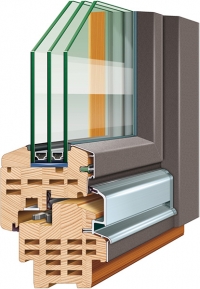 Stavebná hĺbka 97 mm. Koeficient tepelnej priepustnosti celého okna v štandardnom prevedení je Uw = 0,76 Wm2K. Izolačné trojsklo vlastnej výroby s koeficientom tepelnej priepustnosti Ug = 0,5 Wm2K. 4-vrstvový tepelný hranol - masívne drevo vo výberovej kvalite, drevo je vysušené na 12-15%.