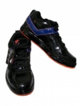 Pánske topánky, značka Pony, štýlové, čiernej farby, oranžové a modré aplikácie, lesklý dizajn.