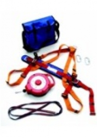 Bezpečnostný postroj TS 103, skracovač dĺžky lana, kladka s oceľovým lankom 10 m, oceľová karabína 85 mm 2,2kN, oceľová karabína 25kN, taška pre sadu.