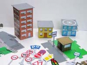 Sada obsahuje 6 dielov cesty, 1 budovu polície, 1 budovu školy, 1 dom, 2 autobusové zastávky, 20 značiek.