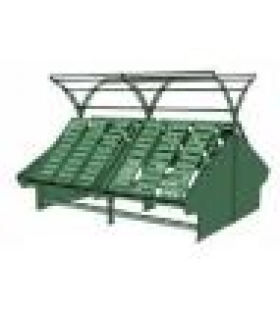 Farebné prevedenia: zelená farba. 2x samostatne stojaci rám na zeleninové prepravky. Na 1 regál je možné umiestniť 6ks zeleninových prepraviek - spolu 24.
