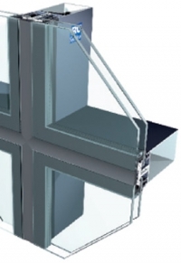 Systém s nosnou konštrukciou Elegance ST a mechanickým uchytením izolačných dvojskiel s drážkou – ekonomický variant štrukturálneho zasklenia (celosklenený exteriér stavby). Tmelené špáry.