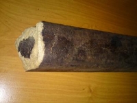 Tvar: štvorcový 50x50 mm s otvorom priemeru 25 mm uprostred. Dĺžka: približne 300 mm, konce sú „lámané“ (nie rezané). Surovina: bukové piliny.