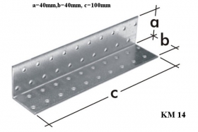 A=40mm b=40mm c=100mm, hrúbka plechu 2mm, diery 5mm. Povrchová antikorózna ochrana-žiarové zinkovanie.