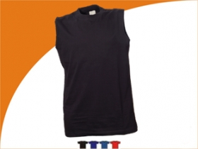 Tričko bez rukávov, dvojité prešitie okolo krku, na ramenách a na spodnom okraji.