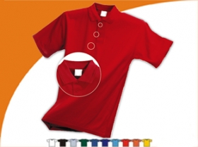 Polokošela s krátkym rukávom, zapínanie na tri gombíky vo farbe polokošele, dvojité prešitie okolo krku, na ramenách a na spodnom okraji, bočné švy.