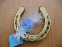 Podkovička vhodná ako darček pri narodení dieťaťa, krste, narodeninách. Darček pre chlapčeka. Veľkosť 12x12 cm.