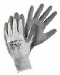 Rukavice HJTG-0005-3 protiporezové pre prácu s ostrými predmetmi, sklom a pod, bezšvový úplet s vlákien Dyneema Lycra a šedého nylonu, dlaň a prsty máčané v PU,veľ. 7,8,9,10.