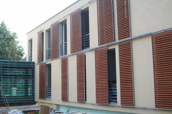 Náhrada za okenice. Architektonický fasádny doplnok. Ochrana okna. Moderné riešenie.