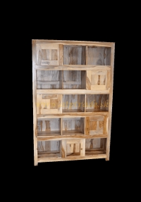 Knižnica z exotického dreva sheesham. rozmer: š130x h35 x 200cm Jedinečná knižnica s posuvnými dvierkami.