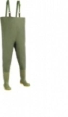Vysoké rybárske čižmy až na hruď. Biela nylonová výstielka. Zvršok z PVC- zelené. Veľkosť 40-47.