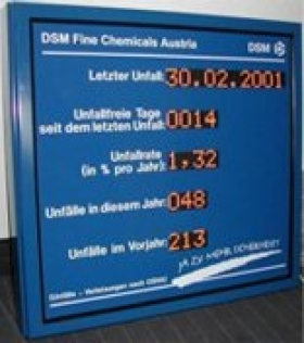 Bezpečnostné displeje pre priemyselné účely sú dodávané na mieru podľa potrieb objednávateľa. Upovedomujú zamestnancov napríklad o rôznych haváriách, počte nehôd, bezpečnostných procedúrach a pod.