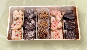 Koláčiky z kakaového a bledého lineckého cesta, arašidovo-čokoládové guľôčky alebo košíčky.