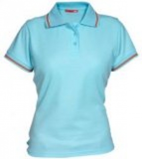 Dámska polokošeľa so zapínaním na tri gombíky. Límec a olemovanie rukávov s červeno-žltými prúžkami v rebovanom úplete, spevnené skyté švy na krku.