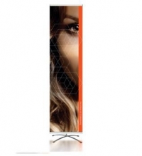 Display s podstavcom Cross.Kreativný, veľmi jednoduchý elegantný prezentačný systém pre uchytenie textilného banneru spôsobom click líšt. Variabilita výšky panelu do 250 cm.