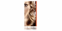 Display šírky 120 cm s podstavcom Twin. Kreativný, veľmi jednoduchý elegantný prezentačný systém pre uchytenie textilného banneru spôsobom click líšt. Variabilita výšky panelu do 250 cm.