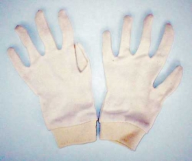 Rukavice zo 100% bavlny v režnom stave, ukončené manžetou.