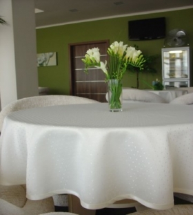 Polyesterové obrusy s vyššou gramážou v decentných dezénoch s teflónovou úpravou si nájdu svoje uplatnenie v štýlovej reštaurácii, útulnej kaviarni, ale aj pri každej príležitosti slávnostného stolovania.