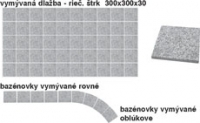 Zámková dlažba -kvet, šesťhran, kvet okrasný 27 ks/m2. Zámková dlažba vejár 40 ks/m2. Zatrávňovacia dlažba 16 ks/m2. Terasová dlažba 350x350x50 - 9 ks/m2. Terasová dlažba 250x250x25 - 16 ks/m2.