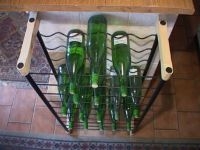 Stojan je vyrobený z drôtu, ktorý je kombinovaný s drevom.