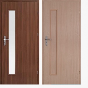 Drevený alebo MDF rám, vyplnený voštinovou výplňou, celok opláštený z oboch strán lisovanou doskou HDF lakovanou alebo fóliovanou. Zasklenie matné biele sklo „lakmat“. Priestor vo falci je olepený fóliou vo farbe krídla.