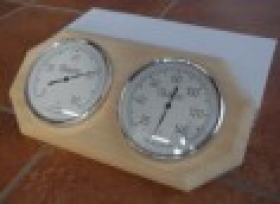 Kombinovaný vlhkomer, teplomer v drevenom ráme.