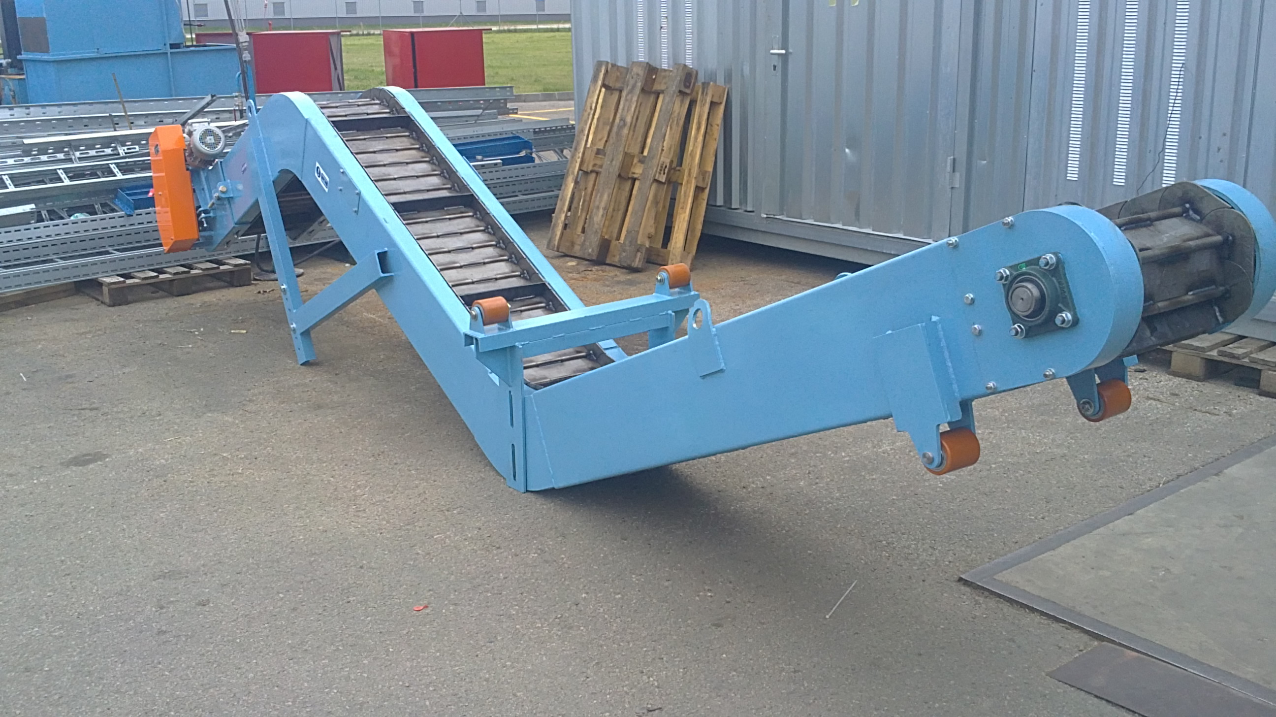 Pás je medzi dvomi koncovými valcami – hnaným a hnacím. Hnaný valec zabezpečuje prenos krútiaceho momentu z elektroprevodovky na pás, hnací napínanie pásu. Elektroprevodovka býva zvyčajne nasunutá priamo na hriadeli hnacieho valca resp. skrytá pod pásom a prenos pohybu sa uskutočňuje cez reťaz.