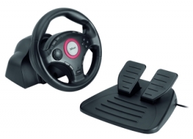 Kompaktní volant s portem USB, pedály akcelerace a brzd a technologie vibrační odezvy. Vibrační odezva ovlivní nabídku realistického zážitku z automobilového závodu (pouze po připojení k PC/PlayStation 2). 3 v 1: Kompatibilní s PC, Sony PlayStation 2 a Sony PlayStation 3.