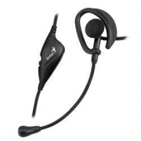 Headset do jedného ucha, ovládač hlasitosti, vhodné pre použitie s notebookom na cestách.