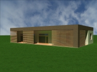 "Štýlový jednoduchosť, pre pohodlnejší domov." Prízemný, obývačka + 2 izby, jedáleň, kuchyňa, chodba, kúpeľňa, strojovňa, s plochou a sedlovou strechou.