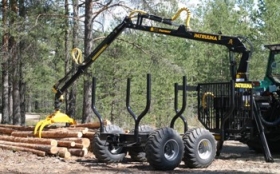 Odvoz guľatiny vývoznou súpravou Traktor Valtra A85n + vlečka Junkkari 9 t + hydraulická ruka Patruuna 866.