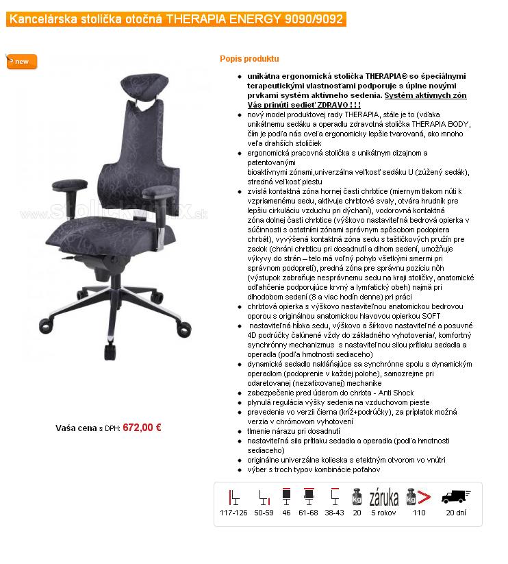 Obchod zo zameraním na ergonomické a zdravotné terapeutické stoličky a kreslá, záťažové kreslá 24/7 pre dispečingy, polície, hasičov, vojakov... Detské a študentské rastúce ergonomické stoličky a stoly, stoličky pre zdravotníctvo, dielne, hotely, reštaurácie, školstvo, kľakačky, servis stoličiek a kresiel, kvalitný kancelársky nábytok s 5 ročnou zárukou, ortopedické matrace, trezory, masívne drevené stoly a stoličky. Detailnejší prehľad po rozkliknutí obrázku alebo na našom webe. Doprava po celom Slovensku.