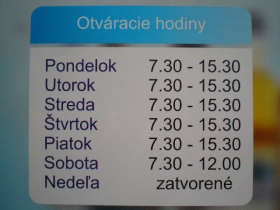 Doba predaja platná pre celý kalendárny rok. OTVORENÉ DO 17:00 (pondelok až piatok).