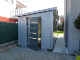 Záhradný domček z trapézových plechov.
