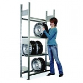 Špeciálne navrhnutý regál na skladovanie diskov osobných automobilov. Nosníky sú tvarované tak, aby disky držali v kolmej polohe. Bočné výstuhy zabraňujú vypadnutiu diskov.