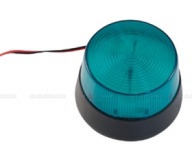 Stroboskopická lampa - výstražný majáček, 100mA/12V DC, v plastovém krytu, zelená barva. Rozměry: Průměr spodní části 72mm, průměr horní části 60mm, výška 47mm.